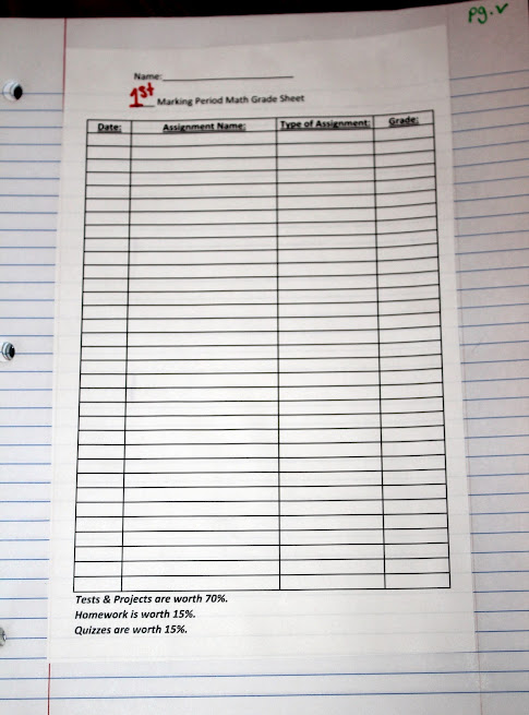 I also decided to include a grade sheet for each marking period and my grading policy. Here is what I have so far: