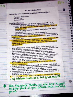 I also decided to include a grade sheet for each marking period and my grading policy. Here is what I have so far: