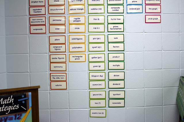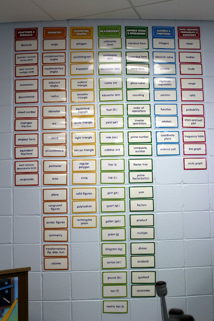My PDP (Professional Development Plan) requires that I have a Math Word Wall. When this requirement first came about, I made a word wall using sentence strips. It took a long time to create and when I sent them to my Processing Center to get laminated, only about 75% of the words made it back to me. I was mad!